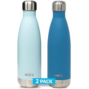 MIRA Brands MIRA 2 Pack 17 Oz Cola Shaped Insulated Stainless Steel Water Bottle – Double Walled Vacuum Insulated Thermos Flask – Metal Sports Bottle – Pearl Blue & Hawaiian Blue