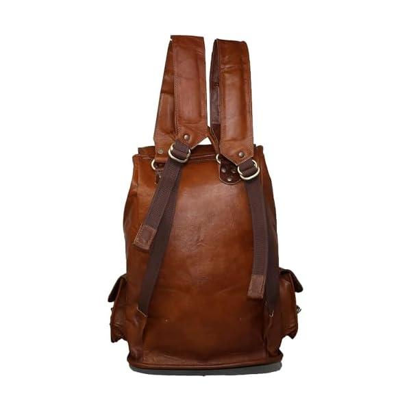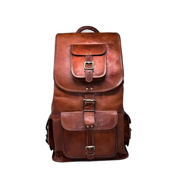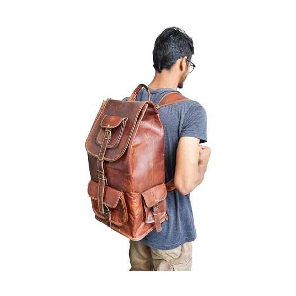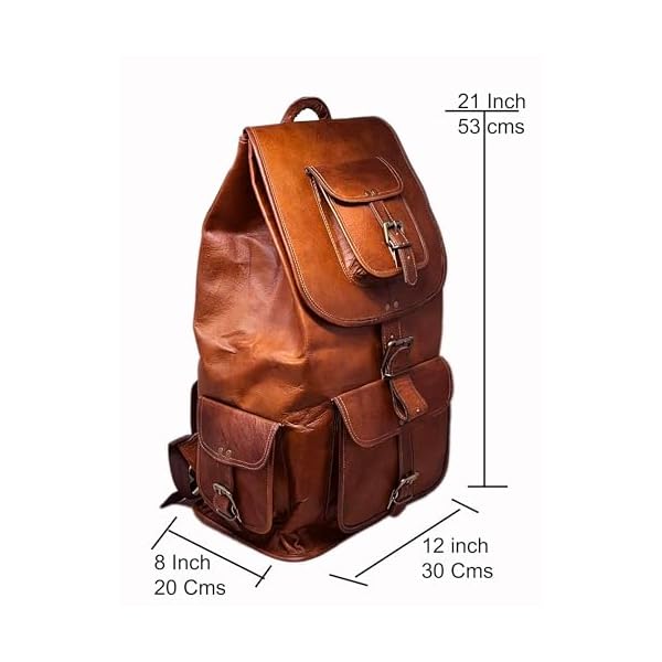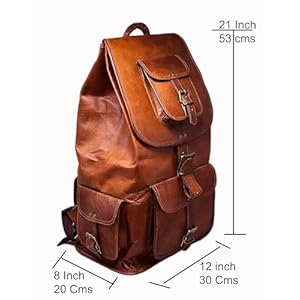 This vintage style backpack has 1 Large front pocket, 3 smaller front pockets that are accessible without opening the main compartment providing easy get admission to. The larger front pocket can accommodate a textbook, magazine, iPhone, iPad and so on. The main compartment has an inside zipper pouch to hold phone / keys or items you wish to have separated. The main compartment can easily fit clothes, bottles, shoes, Laptop & more. Has super sturdy & thick metal fittings for long life.