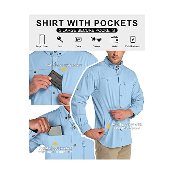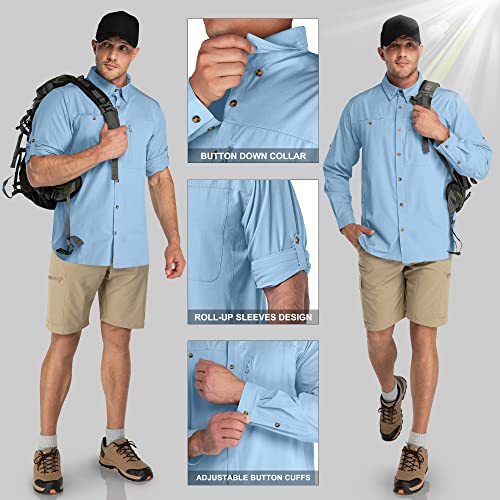 33,000ft Men’s UPF 50+ UV Protection Long Sleeve Hiking Shirts Breathable Quick Dry Fishing Shirts for Safari, Outdoor