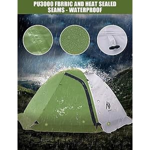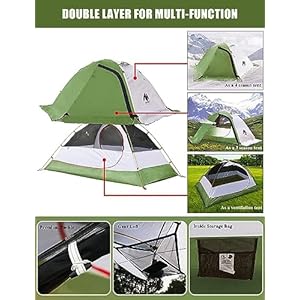 This is a Waterproof & Lightweight Backpacking Tent – This tent is made of 3000MM waterproof PU-Coated 210D Oxford groundsheet, 2000MM waterproof PU-Coated 190T polyester fabric roof, 190T polyester breathable inner wall with a large B3 no-see-um mesh wall. Heats sealed seams in the connection area prevent leaking water, keep you dry inside. Using 7.9mm 7001 aluminum poles, the tent’s total weight is only 5.7 lbs, super lightweight, easy to carry.