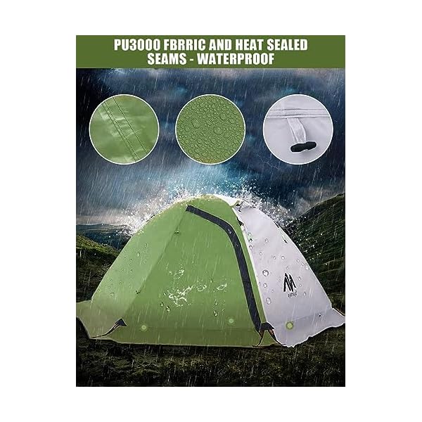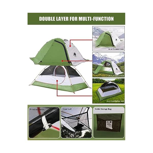 AYAMAYA 2 Man Tent Waterproof, 4 Season Backpacking Tent for 1-2 Person [2 Doors & Double Layer] Winter Cold Weather Easy Setup Dome Camping Tent with Lightweight Aluminum Poles and Snow Flaps