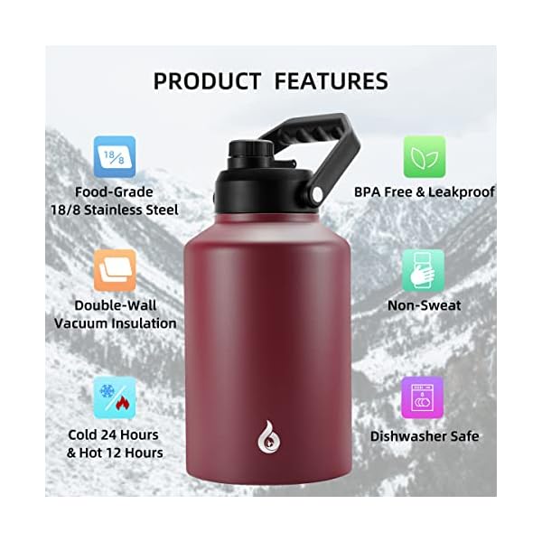 BPA FREE & IDEAL GIFT: This large water bottle insulated is 100% BPA & lead free. Perfect for traveling, mountaineering, cycling, camping, fishing, gym and more. With plenty of vibrant colors, this can be a great gift for your loved ones to assist them keep hydrated and healthier.