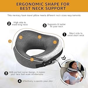 【 100% Memory Foam 】- Take pleasure in using our Y-shaped high-quality memory foam neck pillow; It is firmer than microbeads and inflatables, as memory foam has its density all worked out; Memory foam travel pillows are usually compressible and can fit into smaller travel bags for convenience;The luxurious memory foam filler uses the 5-second return technology