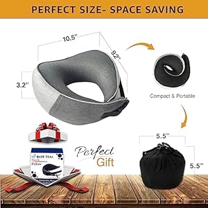 BLUE TEAL Travel Pillow – Memory Foam Neck Pillow for Travel – Neck Support Pillow – Luxury Compact & Lightweight Quick Pack for Camping & Airplane – Sleeping Rest Cushion for Kids & Adults – (Grey)