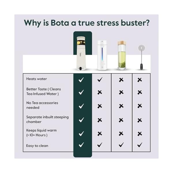 Unlock Health and Flavor: Our BOTA tea bottle’s innovative design features a Separate Steeping Chamber with advanced filter technology that filters tea foam containing bitter molecules. You get a better taste than traditional tea making. Enjoy maximum antioxidants, the richest flavor, and health benefits with every sip!