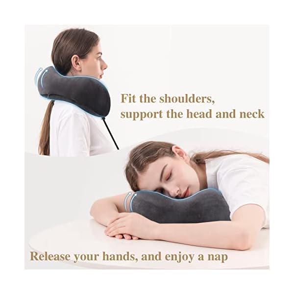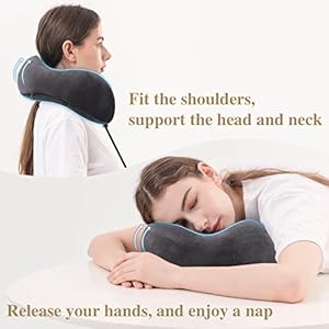 ✈️ERGONOMIC DESIGN: Our travel pillows have a scientific height that naturally fits the back of the head and neck, and the neck curve design makes easier to sleep. Both sides of the groove can support the face and to prevent the head side slip. The rear support is higher, which can just hold the head when tilting back.