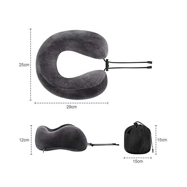✈️100% PURE MEMORY FOAM: Our memory foam neck pillow is made of 100% pure memory foam, which is Luxurious, breathable and comfortable, and has good elasticity and durability. It will rebound slowly in 3 to 5 seconds.