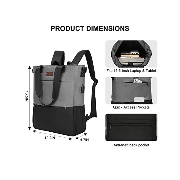 CYUREAY Convertible Backpack Tote Women Laptop Daypack Fits 15.6-Inch Laptop & Tablet