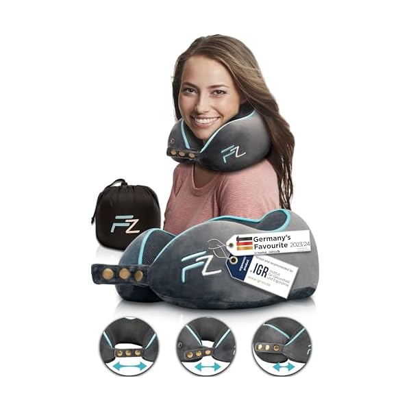 FLOWZOOM COMFY Travel Pillow for Airplane | Neck Pillow for Travel | Flight Pillow | Memory Foam Travel Pillows for Adults | Neck Cushion| Adults, Grey