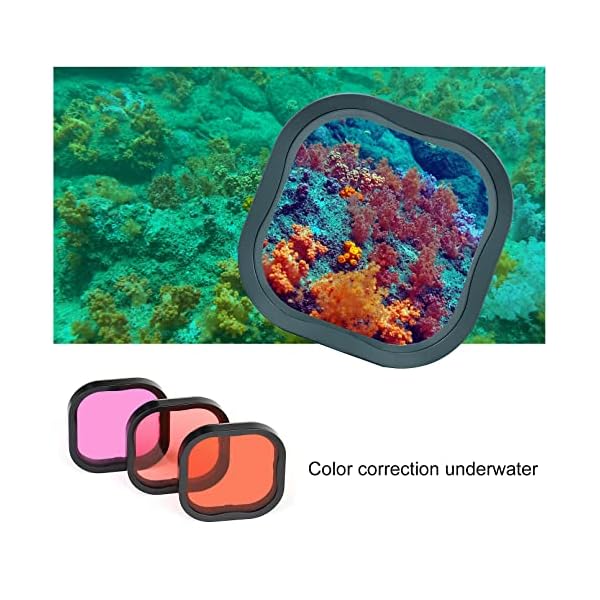 4-Pack Filters Included: The diving filters provide color correction at the same time as capturing footage in blue, green and shallow waters. (Red filter for blue water, magenta filter for green water, light red filter for shallow water.) The 5x close-up macro filter is great helpful for magnifying and capturing underwater scenery and flora and fauna.