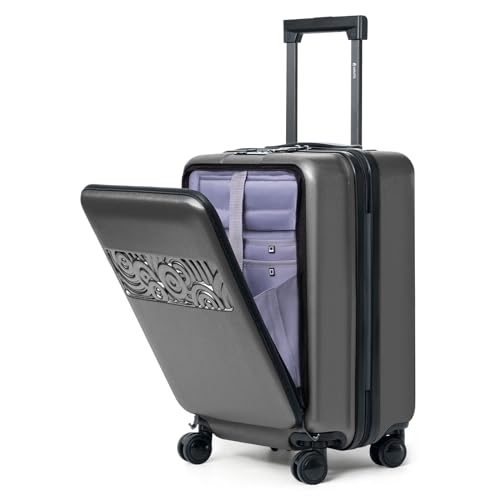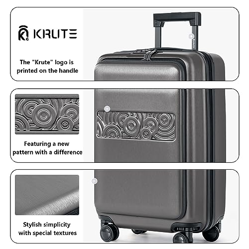 Krute Carry On Luggage with Pocket Compartment ABS PC Hard Shell Suitcases with Wheels, Darkgray, 20″ Carry-on