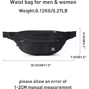 【Attractive Appearance】The black waist pouch is of a moderate size, neither too small to use nor too large to be convenient. Contracted and delicate, fashionable atmosphere.