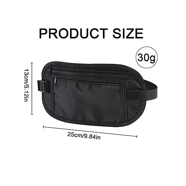 About Size: Shuttle money belt Approx.25*13cm(L*W), Color: Black. Adjustable waist strap to fit all sizes with buckle closure for a Safe fit. Super lightweight that adds minimum bulk and weight, the moisture-wicking backing is skin-friendly and breathable to keep dry and comforatble.