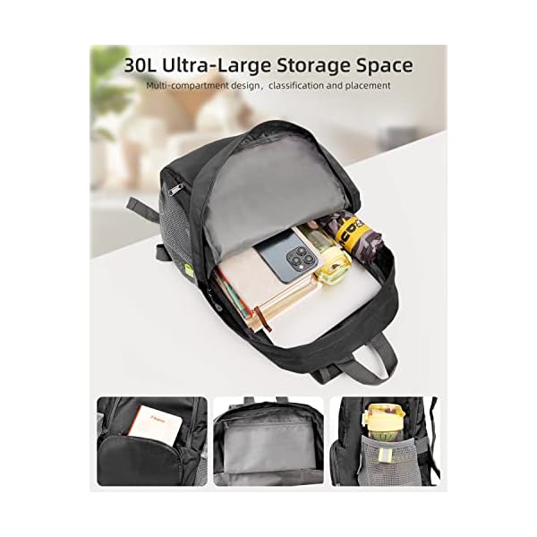 MULISOFT 30L Travel Packable Backpack, Foldable Hiking Backpack for Men & Women, Water-Resistant Lightweight Backpack