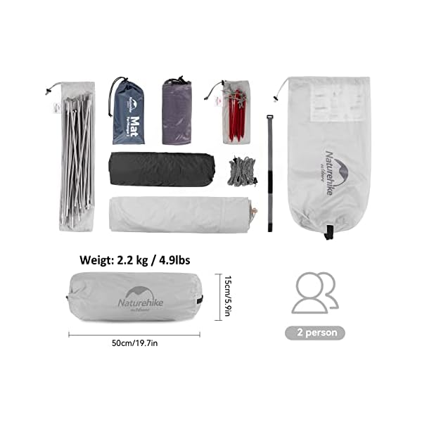 Naturehike Mongar Tent Camping Tent 2 Man Tent Waterproof Ultralight Trekking Tent Hiking Tent Double Layer for Hiking Climbing Outdoor Activities
