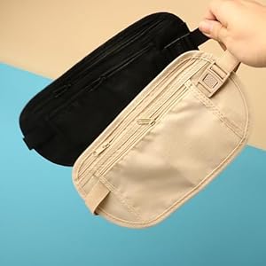 Package Included:You will receive 2 money belt, including 1 black and 1 beige, fashion waist packs quantity is enough to meet your usage needs, use this waist bag to hide your valuables to ensure safety.