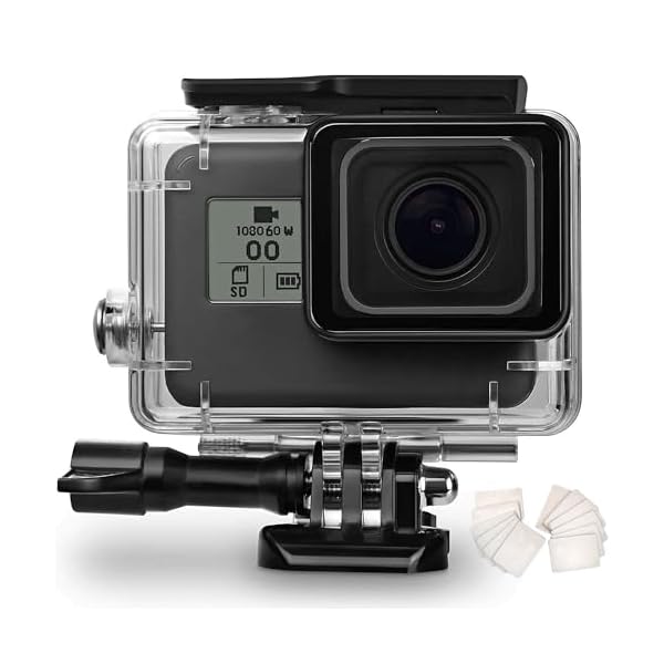 [3]Waterproof and Sealed: The high-strength casing ensures that the camera can dive to a depth of as much as 60M/196FT. And the double lock prevents accidental collision to open the case to make sure the safety of your Go Pro while you dive, snorkel or perform other extreme activities.