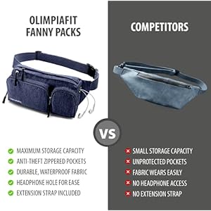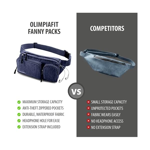 GREAT GIFT / UNISEX / INCLUDED STRAP EXTENSION: Fits all sizes – small, medium and large. Easily adjustable for any waist size (up to 48″ waist with additional 28″ extension) with strong and secure grip. Unlike other brands, OlimpiaFit fanny pack comes with an included strap extension for your convenience no additional purchases needed. All waist packs are unisex and great for men, women, kids. Makes an awesome gift for your adventurous, athletic and well-travelled friends and members of the family.