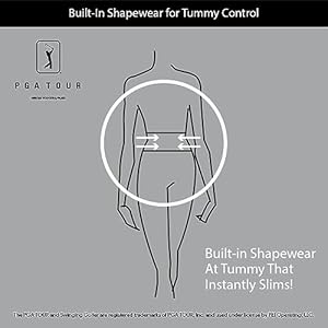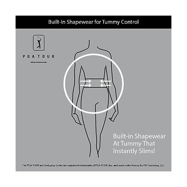 Get able to hit the course in style in these PGA TOUR women’s golf pants. Made with plain weave fabric for durability, these golf trousers for ladies are sure to rise up to regular wear and will definitely turn into a favorite piece in your golf wear with all its performance features. Moisture-wicking technology helps you stay dry and confident as you play as it moves perspiration away from your skin. Sun protection prevents damaging UV rays from penetrating the fabric of the golf apparel. Performance stretch in the material means that you can swing, bend and crouch in total comfort with a maximum range of motion. The design of the pull-on golf pants makes it quick and easy to get able and the ladies slacks feature built-in shapewear at the tummy for a slimming effect that smooths your figure. A mid-rise cut sits just above the hips even as vents in the hem of the pants provides a better fit with your golf shoes in order that the golf pants don’t bunch up at the bottom. Two side pockets and a back pocket, come up with various room to keep your tees, balls and more close at hand. Not only are these ladies trousers for golf great to wear on the course with a PGA Tour golf shirt, they’re also perfect to wear down and around town with a blouse or tee.