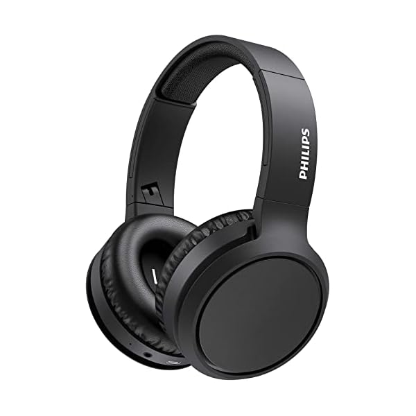 PHILIPS Over Ear Wireless Headphones with Microphone/Bluetooth, Noise Isolation, 29 Hours Play Time, BASS Boost Button, Quick Charging, Compact Folding Audio H5205BK/00