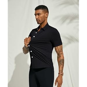 PJ PAUL JONES Mens Short Sleeve Casual Button Down Shirts 4-Way Stretch Wrinkle-Free Dress Shirts Formal Informal Summer Lightweight Breathable SPF 40+ Trip Shirts for Workplace Work Dating
