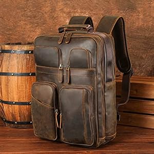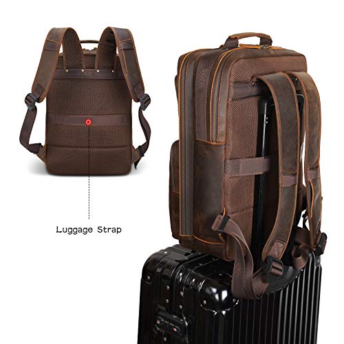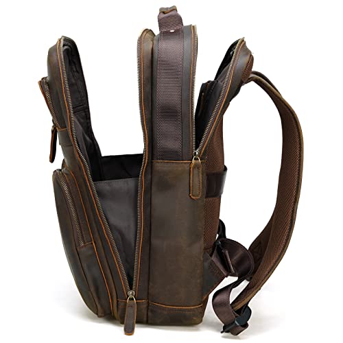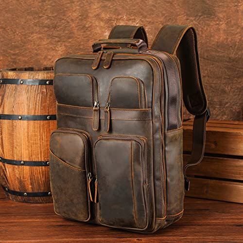 Polare 17.3 Inch Full Grain Leather Backpack for Men and Women Multi Pockets Business Travel Laptop Rucksack
