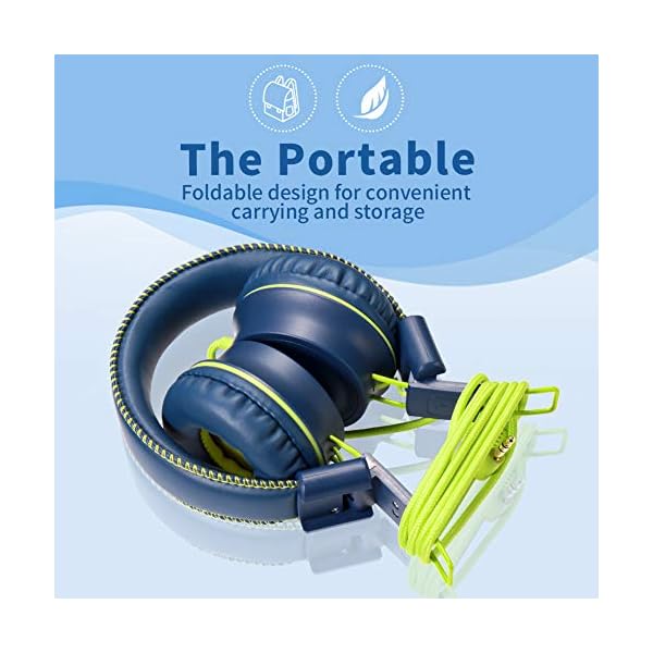 POWMEE M2 Kids Headphones Wired Headphone for Kids,Foldable Adjustable Stereo Tangle-Free,3.5MM Jack Wire Cord On-Ear Headphone for Children/Teens/Girls/School/Kindle/Airplane/Plane/ (Blue)