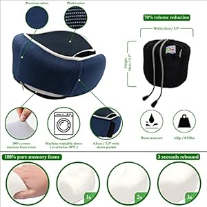 DESIGN & FUNCTIONALITY–the unique shape of the Primari neck pillow moulds perfectly to the contours of your neck, head & shoulders to alleviate or prevent neck pain by helping maintain a natural posture whilst sleeping upright. Our innovative hook & loop fastener fabrics make the neck pillow fully adjustable for a customised fit and suitable for all neck sizes. The sleeve is removable & machine washable. Placement into the storage bag is easy and reduces the size by 70%, making it very portable