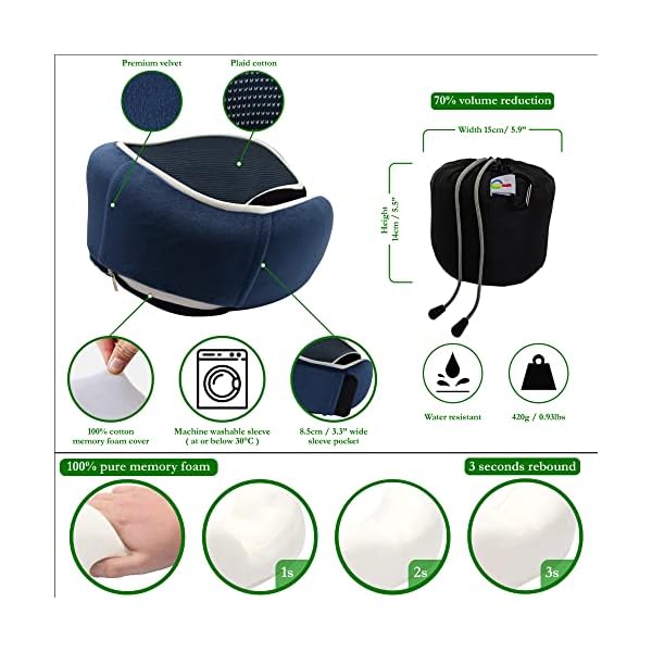 ✔ PREMIUM MATERIALS – the Primari neck pillow utilises prime quality, 100% pure memory foam with advanced 3-seconds rebound. The memory foam is safe by a 100% cotton cover for increased breathability & durability. The inner face of the sleeve is made from super-soft, breathable & 100% skin-friendly plaid cotton fabric, at the same time as the outer face is made from luxurious velvet fabric. The storage bag is made from premium polyester and includes a water-resistant inner layer