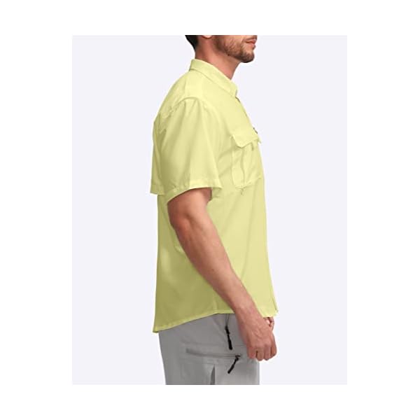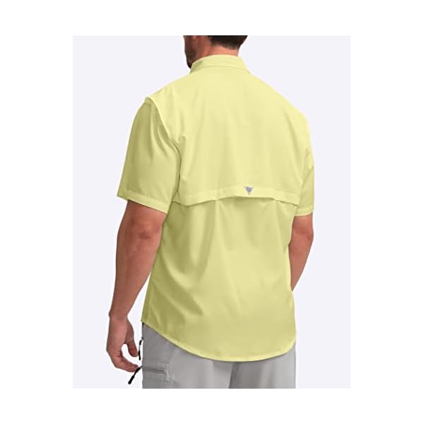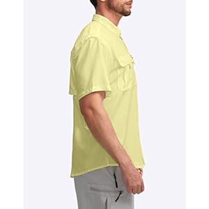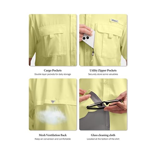 Pudolla mens short sleeve fishing shirts, with a snappy-dry, wicking, cool. At the water, technology upgrades come with water repellent. large zipepr pocket add helpful storage. UPF50+ extended Sun Cuffs support overall protection. And a vented, mesh-covered back panel wicks moisture, whilst selling airflow.