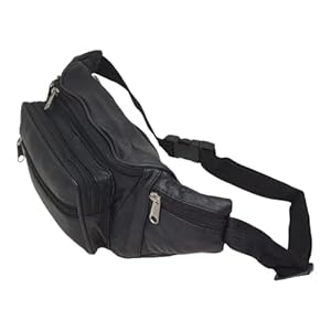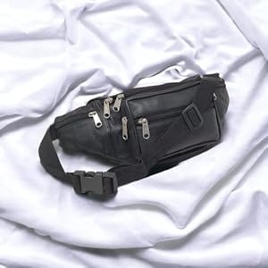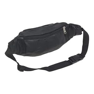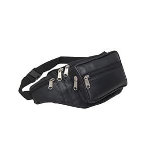 RAS Unisex Black Leather Large Travel Money Pouch Waist Bum Bag Adjustable Belt Strap 1006 (Black)