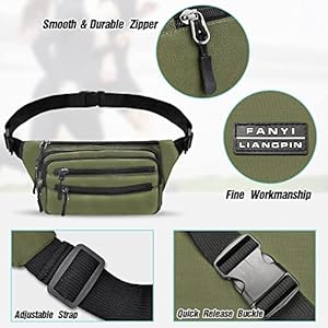 Bumbags for Men Women with A couple of Pockets: The large capacity waist bag has 5 outer pockets of different sizes and one inner secret pocket. The running bag has enough room to hold your cellphone, power bank, bottled water, wallet, cosmetics, sunglasses, napkin, passports, cards, keys, cashes, dog poop bags, and so on. It separates your valuables moderately.