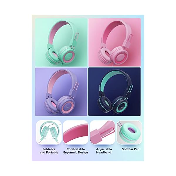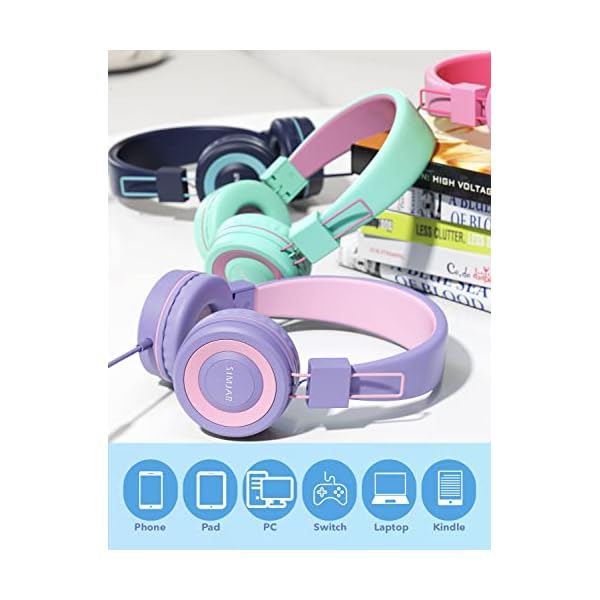 Comfortable & Foldable(Easy to carry and storage): SIMJAR on-ear headphones have super soft and breathable ear cushions, which can make better isolation from ambient noise and good breathability. Multi-Angle rotatable design and an adjustable headband make the perfect fit for head shape to ensure your kids from long-time comfortable wear