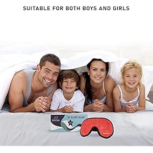MADE TO LAST. Sleeping mask for kids designed have 3D contoured memory foam fabric and a unique design with soft-touch surface. Our eye covers kids is super lightweight and breathable, and your child feels nothing when wearing it all night.
