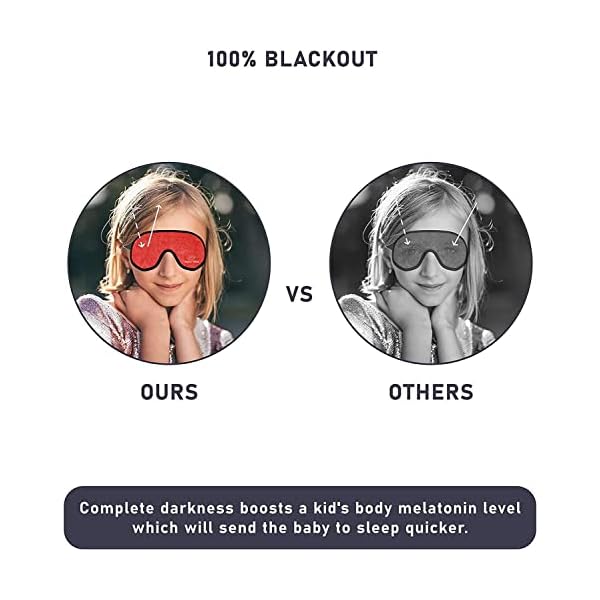ZERO PRESSURE & BLACKOUT. Unlike other methods, our kids sleeping mask is an affordable natural way to provide happy and healthy sleep for your children. Sleeping mask kids have memory foam 3D contoured design, which fits the nose bridge closely and leaves no pressure on your baby.