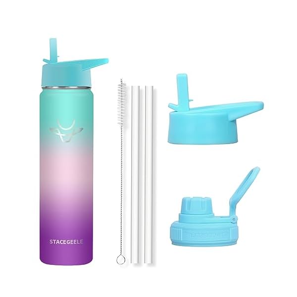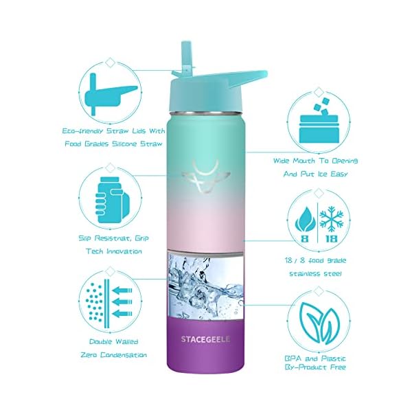 【WIDE MOUTH WITH ECO-FRIENDILY STRAW LIDS】 Mouth is wide enough for ice cubes and easy cleaning, Also each and every STACEGEELE insulated bottle comes with BPA FREE straw lid ,and each and every straw lid with soft silicon pad, perfect for people’ drinking habits, make you drink happily.