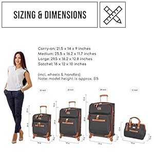 Steve Madden Designer Luggage Collection,Lightweight Softside Expandable Suitcase for Men & Women,Durable 20 Inch Carry On Bag with 4-Rolling Spinner Wheels (20in, Global Black, 20 inches