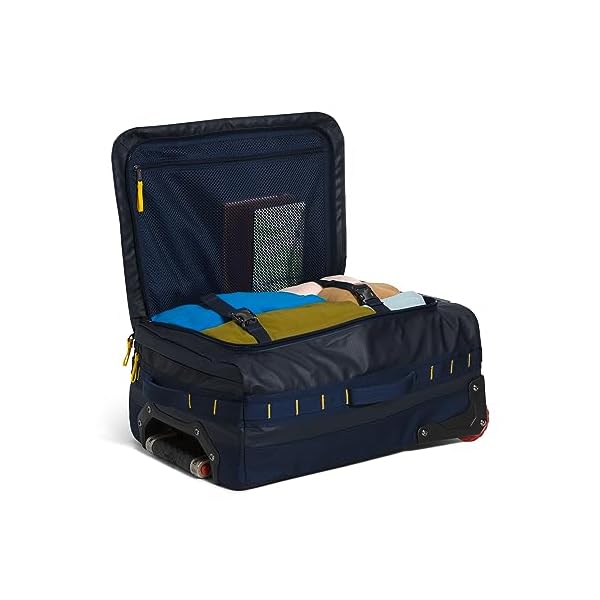 PREMIUM FABRIC. Made from our durable and lightweight Base Camp Voyager fabric, this roller bag is ready for use even in adverse conditions, thanks to a Durable Water-Repellent (DWR) finish. 1 bottom and 2 side handles offer multiple carrying options.