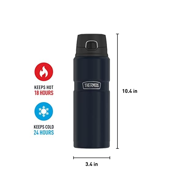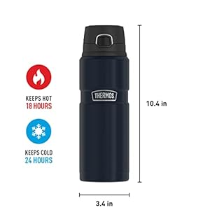THERMOS vacuum insulation technology for maximum temperature retention, hot or cold, keeps liquids hot for 12 hours and cold for 24 hours