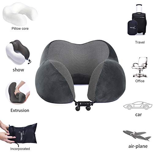 Travel Pillow, Best Memory Foam Neck Pillow Head Support Soft Pillow for Sleeping Rest, Airplane Car & Home Use (Grey)