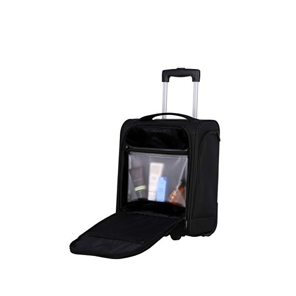 Practical: the Cabin Underseat carry-on suitcase has a lockable telescopic rod, a zip pocket on the front and side, a removable liquids bag and two smooth-running comfort wheels