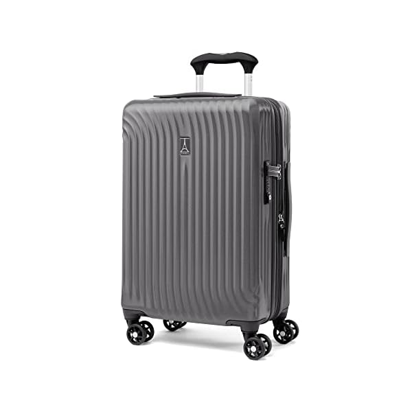 Finally, worry-free check-in is yours with the ultra-resilient, durable, well-equipped Maxlite® Air Large Check in Expandable Spinner Hardside Suitcase. This 29 inch luggage with spinner wheels is perfectly sized for longer trips or a couple of people. 62 inch suitcase complies with published check-in size restrictions for almost all major domestic airlines. The 100% polycarbonate exterior of this checked bag is engineered to flex on contact to prevent splitting, cracking or punctures, at the same time as a stylish exterior finish reduces visible scratches or scuffs in this hard luggage. A built-in TSA-lock allows authorities to safely unlock and relock the light pink suitcase for inspection when needed, and a zippered expansion option further maximizes packing capacity when needed. The interior lining of this large shuttle suitcase with wheels is comprised of 100% post-consumer recycled plastic bottles to assist reduce environmental waste and treated with H2O guard for moisture resistance. Two zippered interior divider panels with a couple of accessory pockets keep your packed contents organized, separated, and protected. Roll with ease on eight smooth-gliding spinner wheels that rotate 360° led by a PowerScope Lite extension take care of that locks in two positions (38” and 42.5”) for users of different heights. A patented Contour Grip with rubberized touch points makes maneuvering easy and comfortable. This large hardside spinner luggage is backed by our Built For a Lifetime Limited Warranty with Trusted Companion Promise that even covers damage resulting from airlines or other common carriers for the first year of the lifetime warranty.