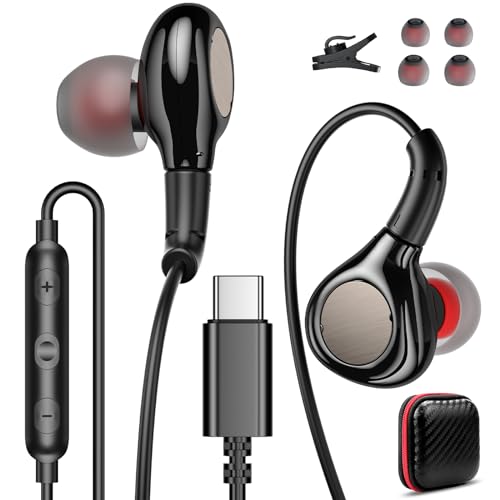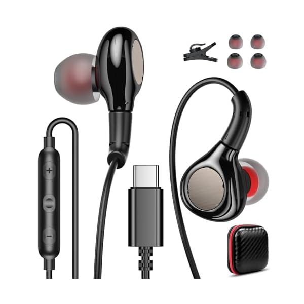 iMangoo USB C Headphones with Microphone Noise Canceling in-Ear Earbuds Hi-Fi Stereo Sound Type C Gym Ear Buds: Built-in powerful DAC chip to handle the high-resolution acoustics of your devices, no buzzing, popping, or some other bad audio issues Comfortable In Ear Earphone: Ergonomic design with 3 sizes of ultra-soft silicone ear buds (S/M/L) ensures and 2 wearing styles to your choice, perfectly fit for tiny ears in children, women, and girls, and comes with a portable headphone carrying case and earphone clip for comfortable long-term use Remote Keep an eye on & Microphone Running Headphones: Let you play/pause songs, skip next/previous songs without picking up your phone, and easy get right of entry to to volume Keep an eye on all through usage; The high-quality microphone which can hand-free calling, allow answer/end calls easily Premium Material Workout Headphones: Metal-plated connectors effectively reduce the phenomenon of poor contact, are stretch resistant, long-lasting; TPE tangle-free reinforced cord, got through 5000+ bend bears test, which is durable for day-to-day usage Package Included 1*USB C Earphones 3*Eartips(S,M,L) 1*Earphone Wire Clip 1*Carrying Case