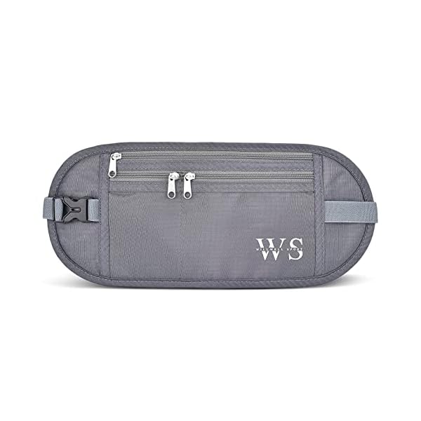 WILLWELL SPORT Money Belt Passport Holder RFID Blocking Waterproof Fabric Grey