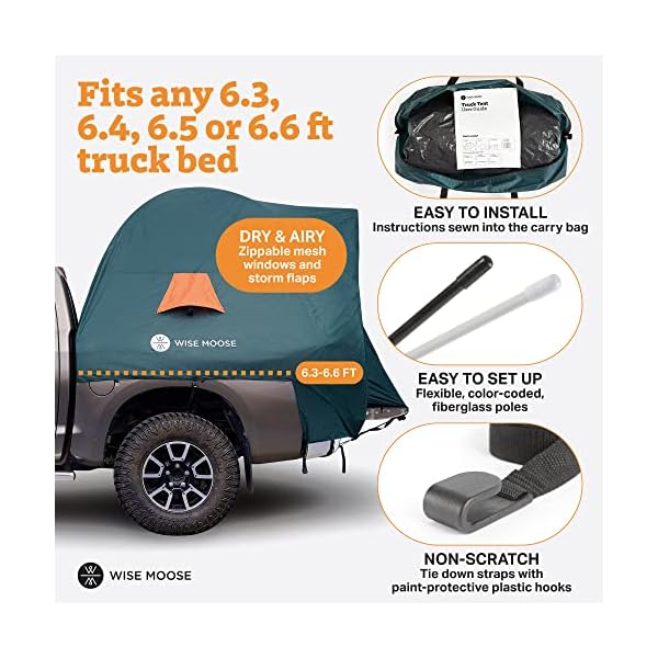 WISE MOOSE Truck Bed Tent – Fits 6.2-6.5 ft Truck Tents for Camping, Waterproof & Windproof Pickup Truck Tent 6.5 Foot Bed, Sturdy Truck Bed Camper Shell with Carry Bag
