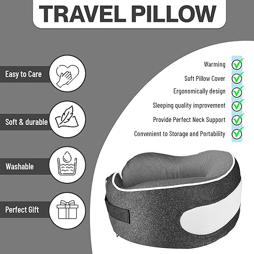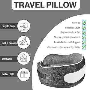 Pure Memory Foam Pillow Filling: The neck pillow is filled with memory foam, which is soft and can effectively relieve neck pain during the journey. Thanks to the exceptionally narrow design of the airplane pillow, that prevents your head from being pushed forward when you lean back.