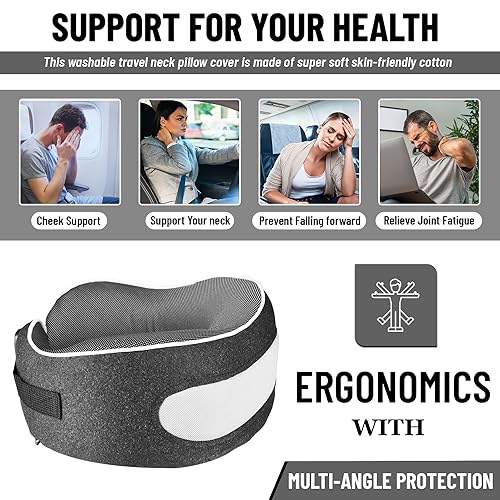 360° Neck Support: This travel pillow is ergonomically designed to provide all-round support and pressure relieving. The contour of this product is tailored to perfectly match your neck, head, cheeks, and chin, ensuring a more comfortable experience throughout your journey.