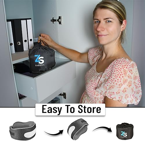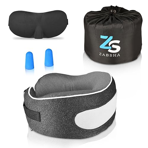 ZABSHA Memory Foam Neck Pillow for Travel, Quick Pack Flight Pillow for Airplane, Train, Car, Office Sleeping Rest (Grey) Soft Neck Support Pillow, Full 360° Neck Support – Machine Washable Sleeve